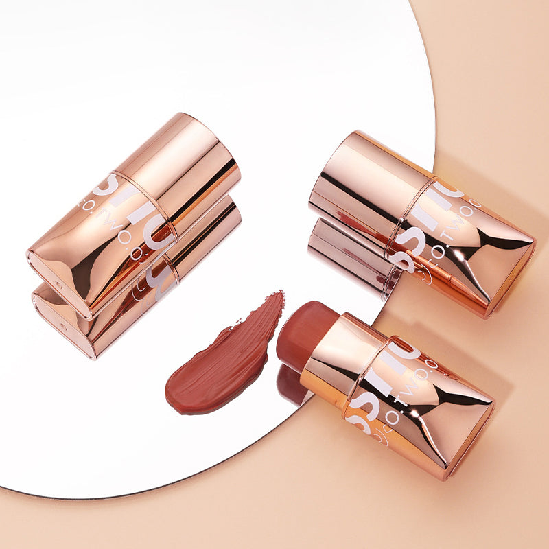 - Multi-bruks pinne som fungerer som øyenskygge, leppestift og rouge.