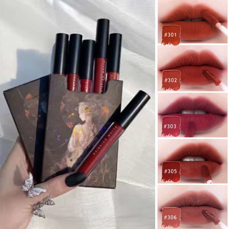 Pakken Inkluderer: 1 * 5 Farger Fløyelsmatt Ikke-Klebrig Leppeglans
