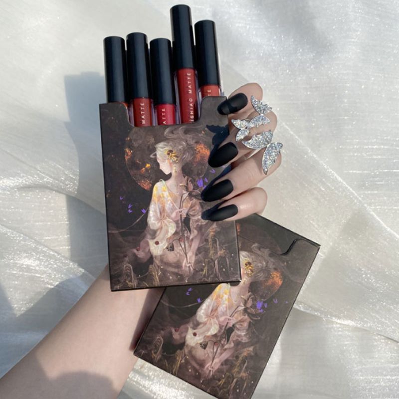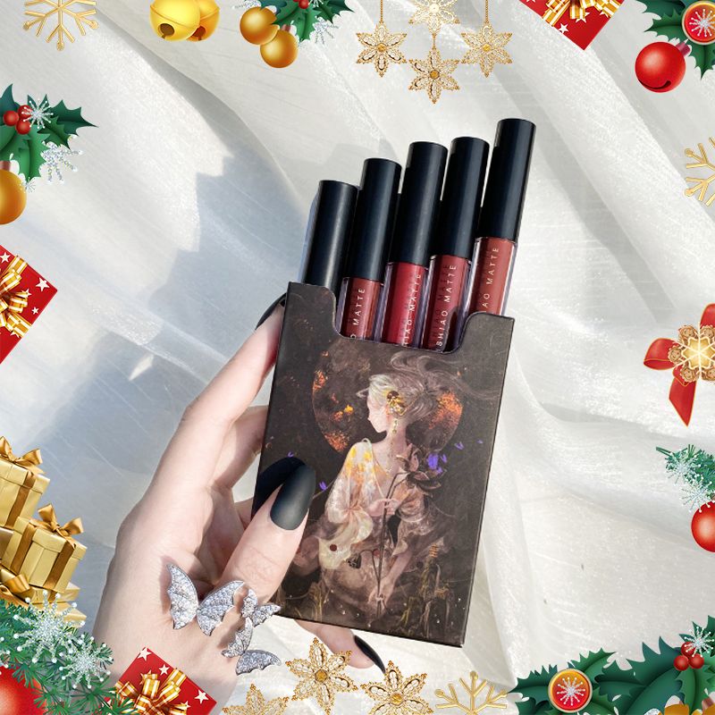 Unn deg skjønnheten til den elegant kvinnen i ditt liv med dette utsøkte settet med 5 Farger Fløyelsmatt Ikke-Klebrig Leppeglans. Disse luksuriøse leppestiftene er designet for å fremheve kvinnens naturlige eleganse, og har en fløyelsmatt tekstur og levende farger. Disse leppestiftene er det perfekte gavevalget til dem som setter pris på raffinement og kvalitet, enten det er til en spesiell anledning eller til hverdags.