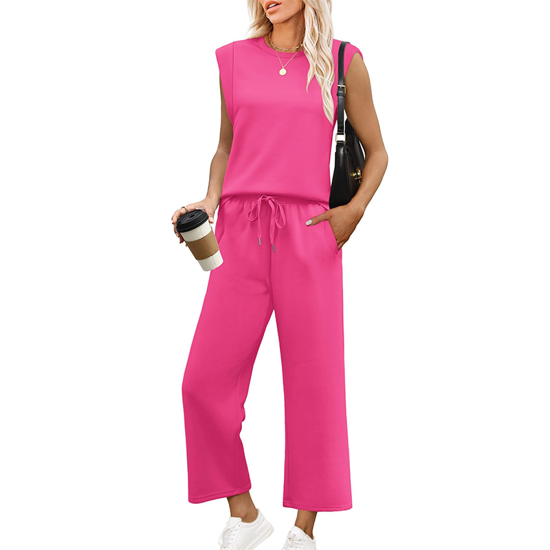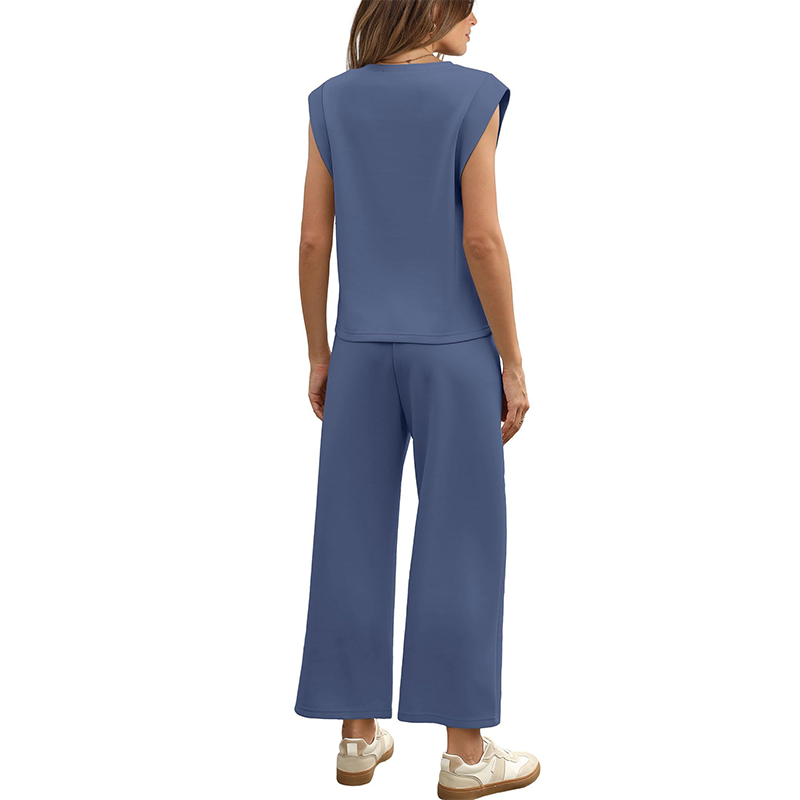 Pakke inkluderer: 1 × Damernes komfortable to-dels-sett: kort sleved top og bred-lags cropped-bukser