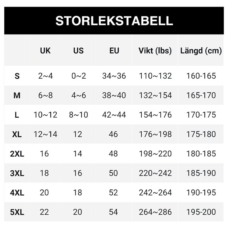 Størrelse: S, M, L, XL, 2XL, 3XL, 4XL, 5XL
