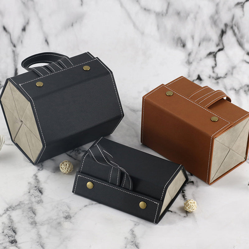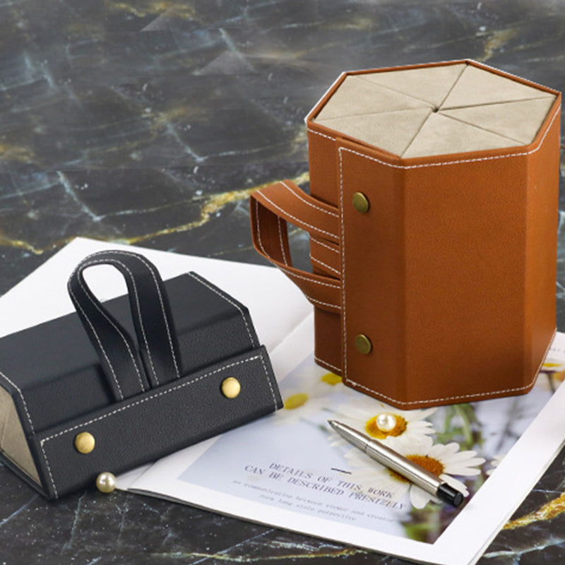 Kvalitet og holdbarhet er viktig når det gjelder vår bærbare og multifunksjonelle brille- og smykkeorganiserer. Den er ekspertisert designet med materialer av høy kvalitet som er valgt for deres lang levetid og visuelle appell. Eksteriøret har et slankt og holdbart stoff som ikke bare ser stilig ut, men er også motstandsdyktig mot vanlig slitasje. Innsiden av organisereren har mykt og fløyelsaktig stofffôr i rommene. Dette luksuriøse stofffôret gir ikke bare en elegant touch, men beskytter også brillene og smykker mot potensielle riper og skader. Den nøyaktige søm og håndverk garanterer at organisereren beholder sin kvalitet og funksjonalitet over tid.