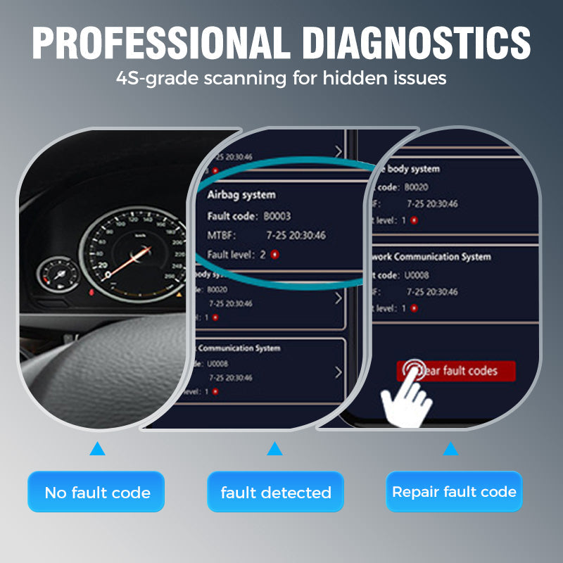 4S-GRADE DIAGNOSTIKK – Profesjonell skanning med OEM-protokoller oppdager over 5 000 parametere, avdekker skjulte problemer fra mindre feil til kritiske motorfeil, og forhindrer kostbare reparasjoner og brudd.