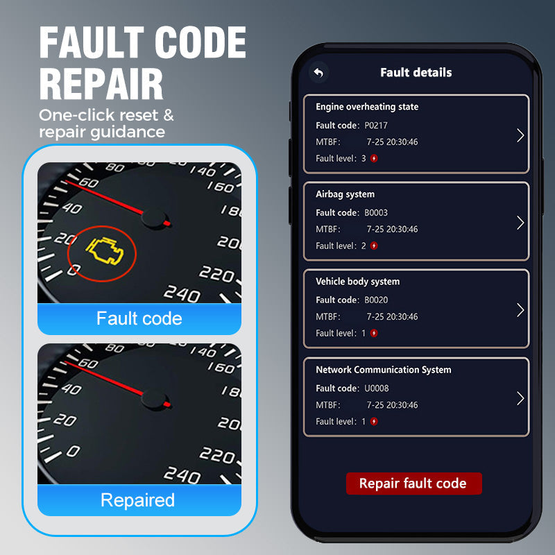 FEILKODEREPARASJON – Fjerner feilkoder, nullstiller advarselslamper og gir reparasjonsforslag som å fikse løse ledninger – sparer besøk hos mekaniker med en enkel ettklikk-løsning.