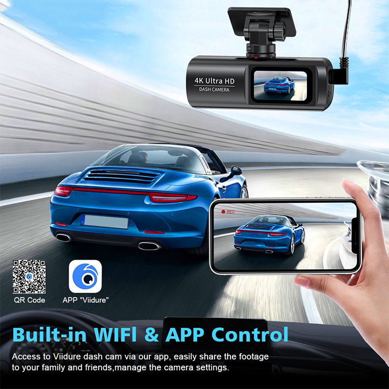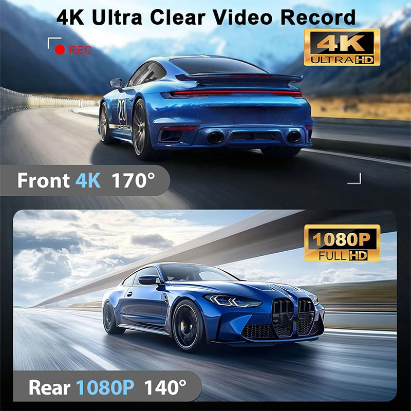 OPPTAK FORAN OG BAK: Opplev enestående klarhet med 4K foran og 1080P bakkamera. Fang alle hendelser under kjøring for fullstendig overvåking døgnet rundt.