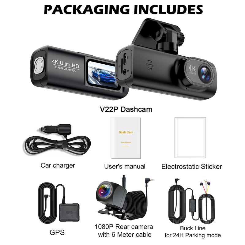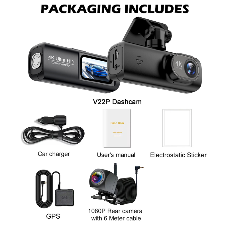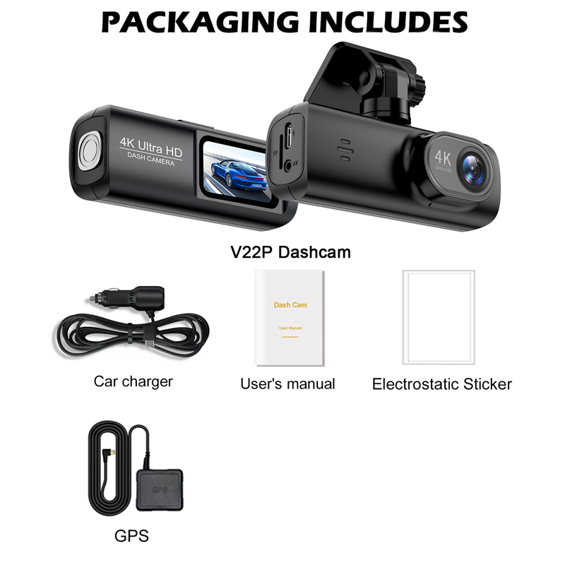 Inkludert i pakken: 1* 4K dashcam med GPS