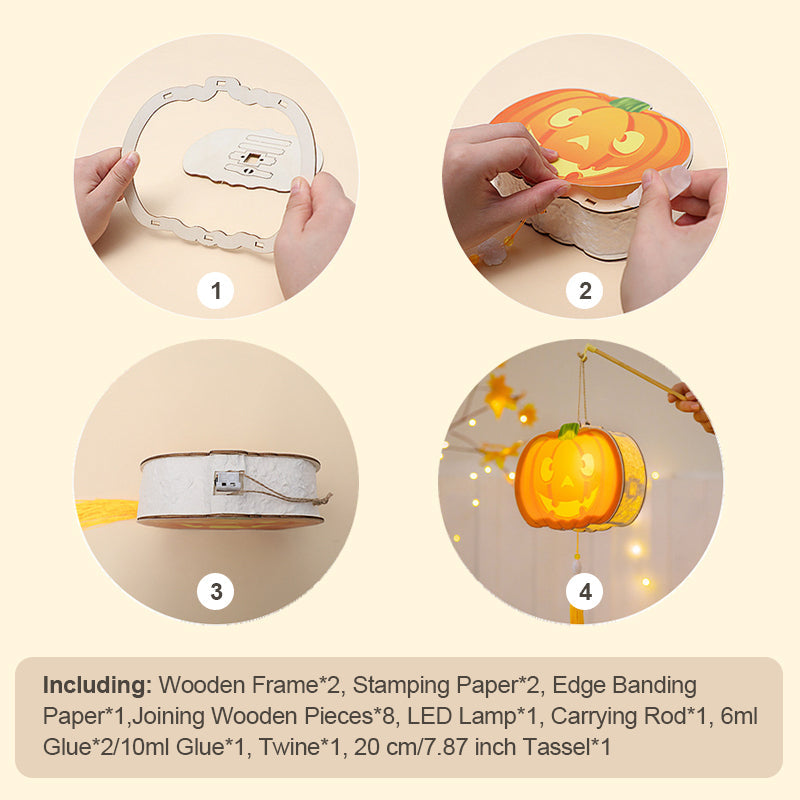 Inkludert: Treramme*2, stempelpapir*2, kantbåndpapir*1, sammenføyning av trebiter*8, LED-lampe*1, bærestang*1, 6 ml lim*2/10 ml lim*1, hyssing*1.20 cm/7.87 tommer lang dusk*1