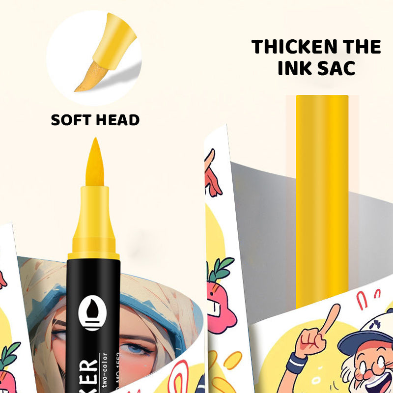SLIPP LØS KREATIV ALLSIDIGHET MED DUAL TIPS - Forbedre kunsten din med Dual Tip Dual Color Watercolor Marker Kit, designet for å tilby enestående allsidighet i hvert strøk. Hver tusj har to distinkte fargetipper: en tipp for hovedtonen og en annen tipp som matcher hovedfargen.