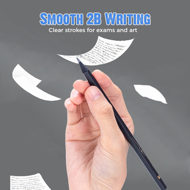 GLATT 2B BLY FOR TYDELIG SKRIVNING – Førsteklasses 2B blykjerne glir jevnt over papiret og gir skarpe, mørke linjer som er ideelle til lekser, kalligrafi og standardiserte prøveark. Ingen utvisking, slik at skrivingen blir ryddigere og renere.