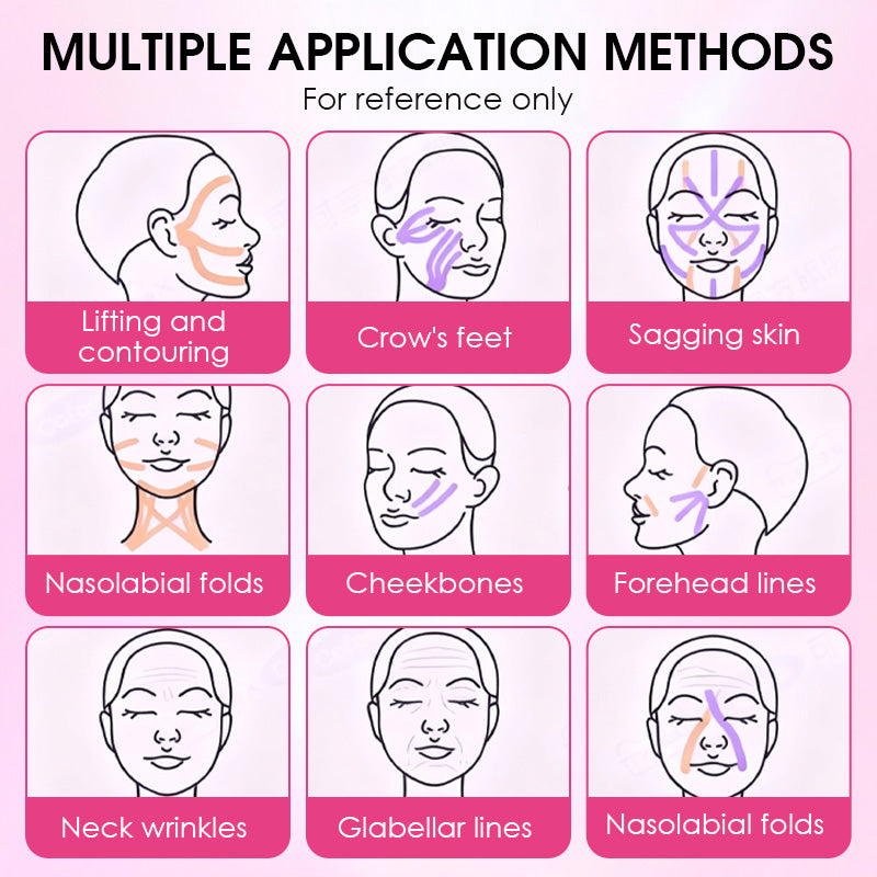 MÅLRETTET LØFTENDE & STRAKKENDE EFFEKT - Løfter og støtter ansikts- og nakkemuskler forsiktig, og forbedrer aktivt hudens fasthet. Denne tapen hjelper til med å redusere synligheten av pannefurer, arrinjer og nesemunningsfolder ved å gi jevn, forsiktig spenning. Oppnå en glattere, forynget hud uten inngrep.