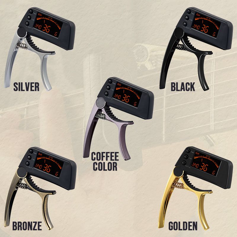 Pakken inneholder: 1x Dobbeltbruks gitar capo tuner