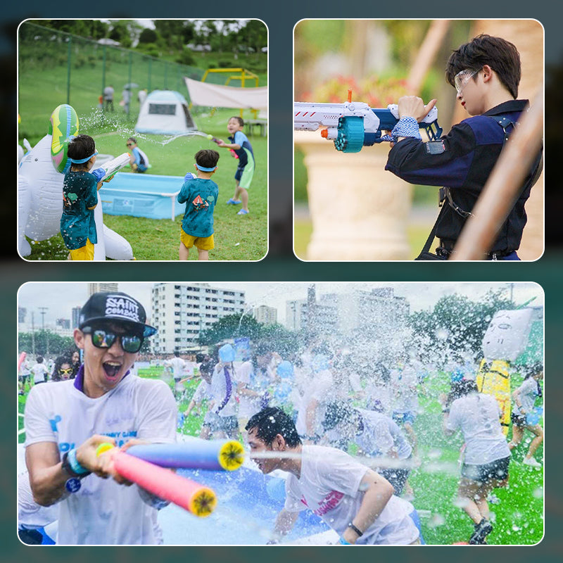 OPP TIL 8 METERS REKKEVIDDE - Opplev kraftig vannframdrift med en rekkevidde på opptil 8 meter, perfekt for store lekeområder. Den elektriske motoren gir en kontinuerlig høytrykks vannstråle, ideell for vannkamper eller utendørs lek.
