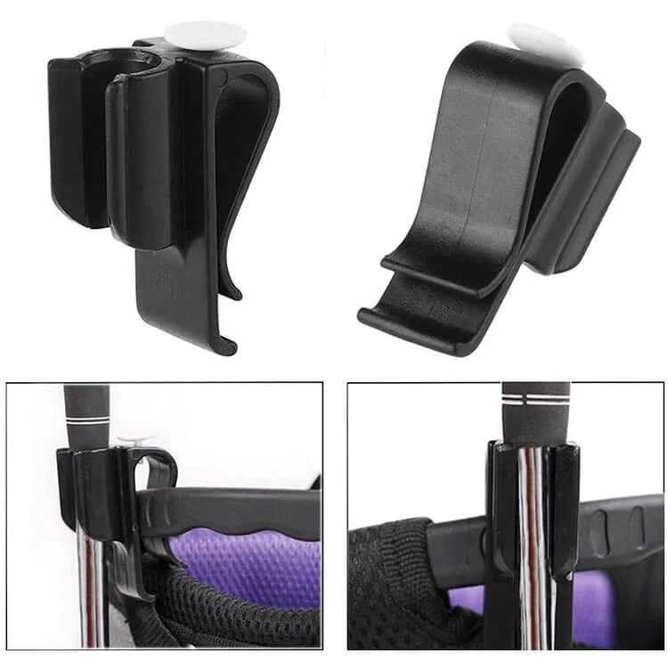 Trykkstangklemmeholder flott for golfkøller, den er veldig enkel å bruke. Festes ganske enkelt på siden av golfbagen med en hvit ballmarkør, holder putteren på plass med kjevene og forhindrer skader på køllene.