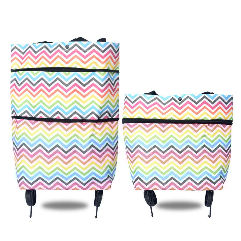 - Multifunksjonell - Når du åpner glidelåsen på vesken, forvandles den til en handlepose. Hvis du har mange ting, blir den til en praktisk handlevogn som er lett å dra med seg.