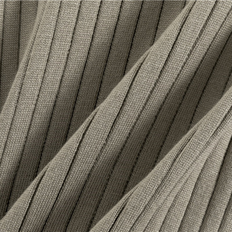 STRIKKET STRIPEMØNSTER: Den ermeløse genservesten har et strikket vertikalt stripemønster som tilfører et snev av raffinement og bryter monotonien i ensfargede plagg. Denne designdetaljen er med på å gjøre settet enda mer raffinert.