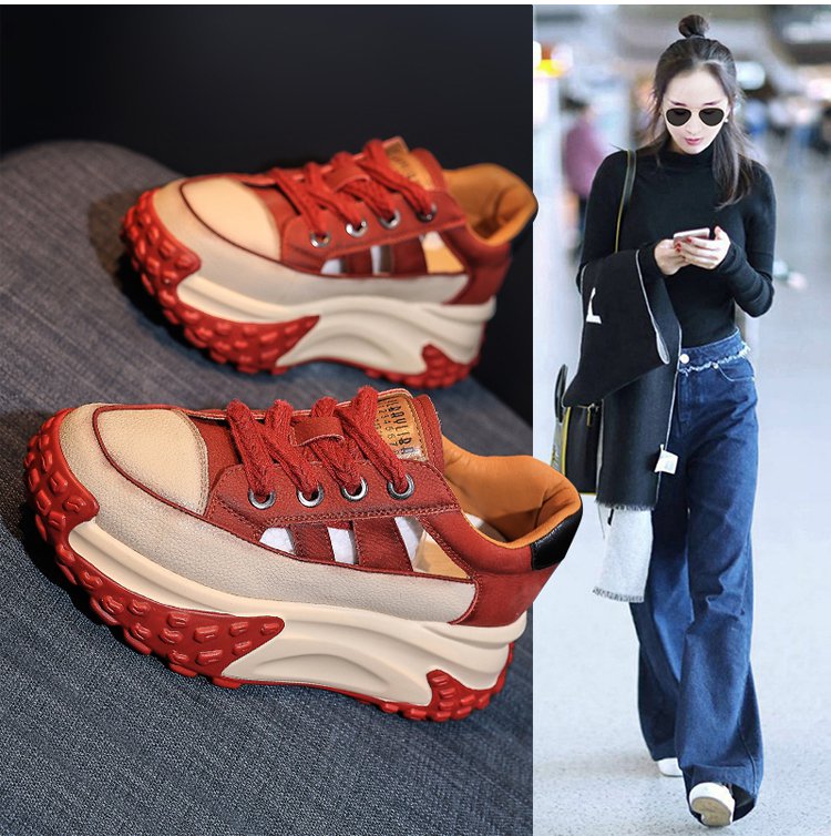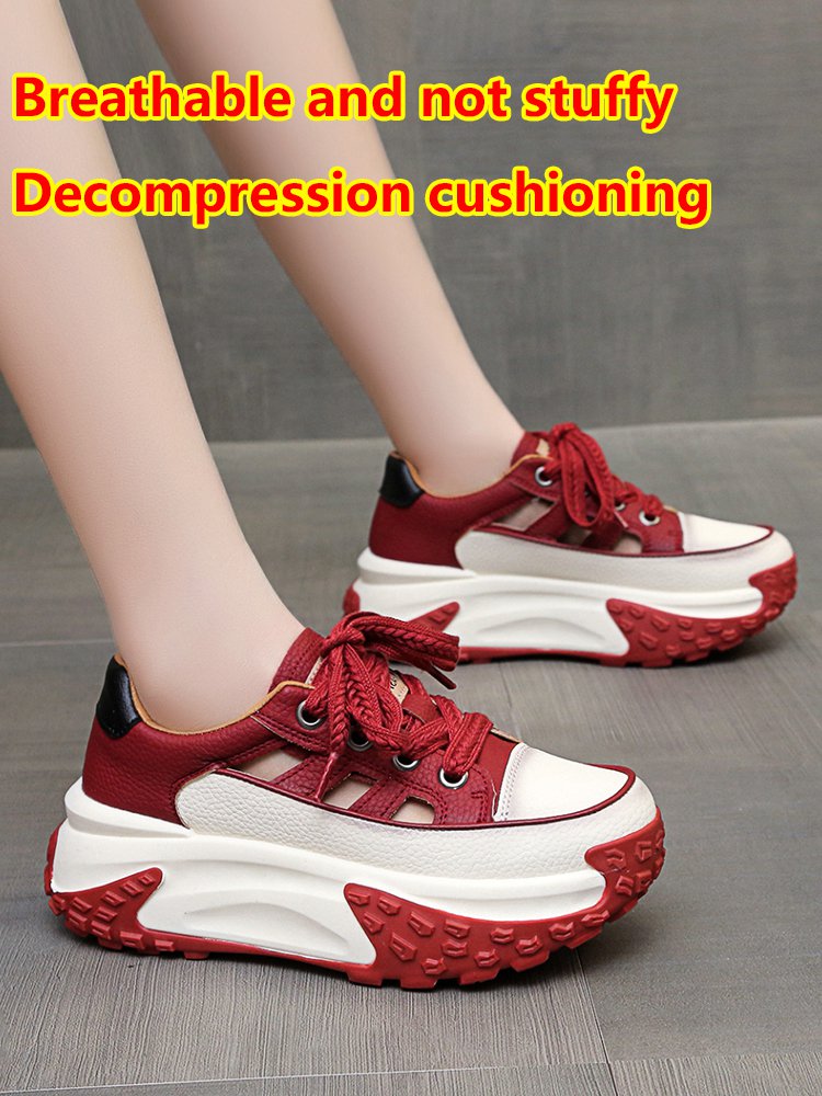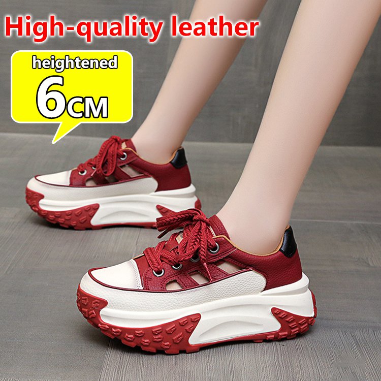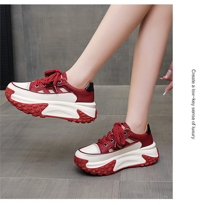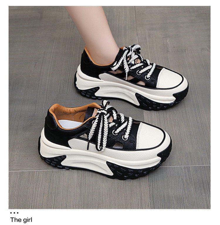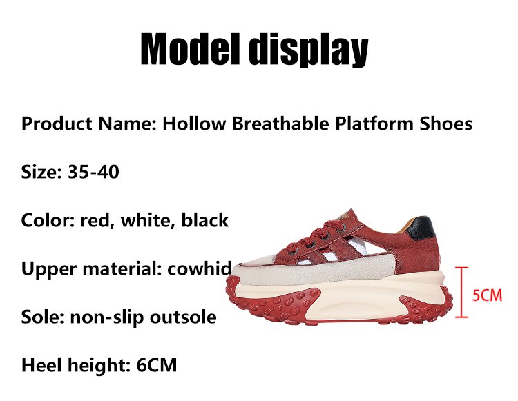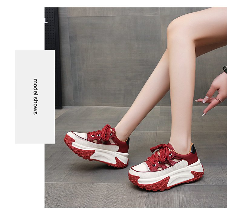 【Økt høyde 7 cm】Hule pustende mote platform sneakers