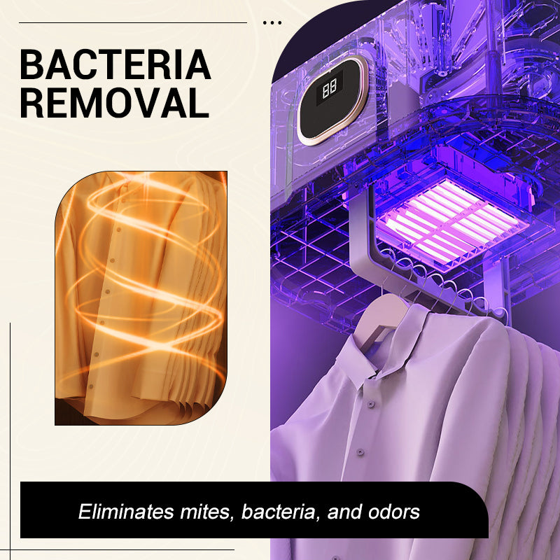 SANITERENDE EFFEKT – Mer enn bare tørking, bidrar enheten til å opprettholde renslighet. Den varme luften eliminerer bakterier og midd, mens innebygd negativ ion-teknologi nøytraliserer lukt. Dette sikrer at klærne ikke bare blir tørre, men også hygienisk trygge og friske.