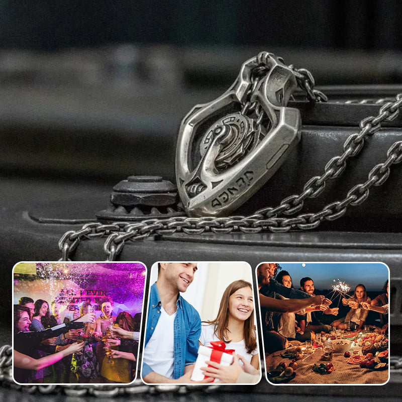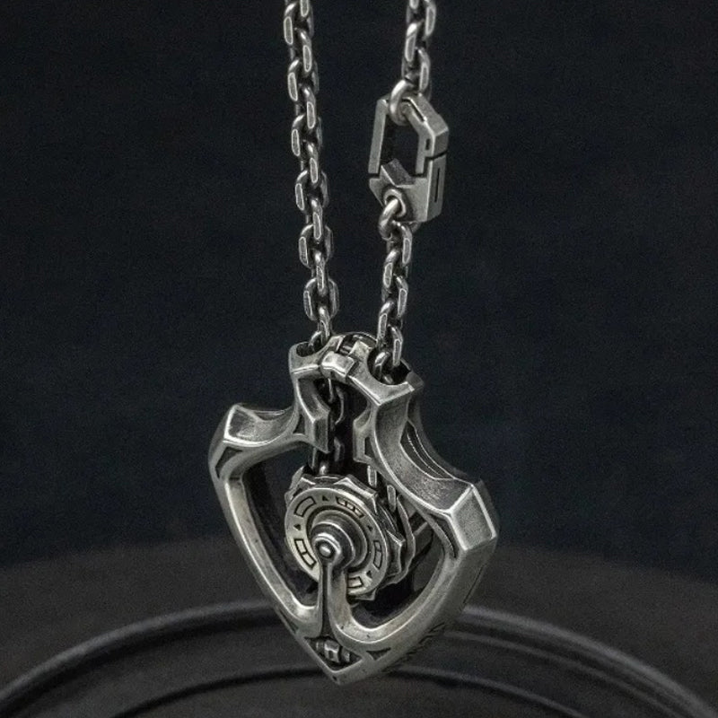 UNIK DESIGN: Dette halskjedet har et slående mekanisk anheng med roterende tannhjul som kombinerer kunst og teknologi på en vakker måte. Det iøynefallende designet er perfekt for deg som ønsker å skille deg ut og uttrykke din individualitet.