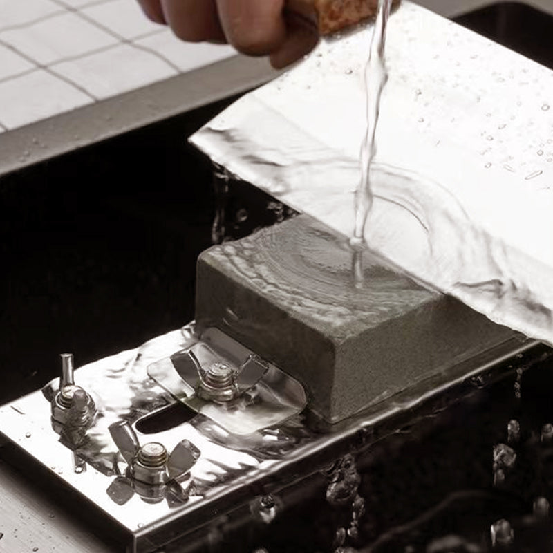 INDUSTRISTERK KONSTRUKSJON: Velg mellom premium 2,5mm tykt rustfritt stål (470g) eller lette sinklegeringsrammer (385g). Begge alternativene motstår korrosjon fra vannutsattelse og tåler års daglig bruk. De sklisikre gumiføttene forblir på plass under kraftige slipingsbevegelser.