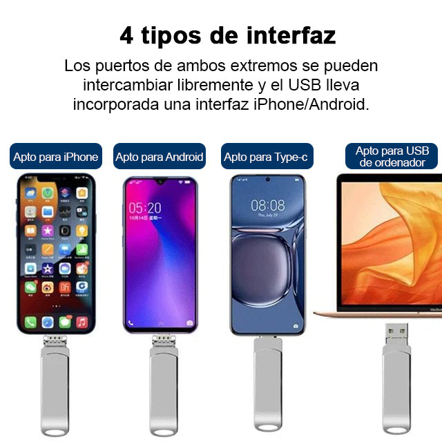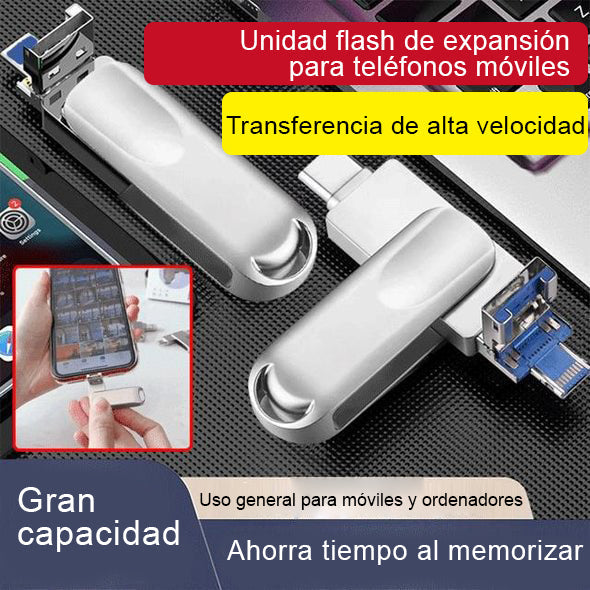 Multifunksjonell og stor kapasitet 4-i-1-utvidelses-USB-minnepinne for mobiltelefoner