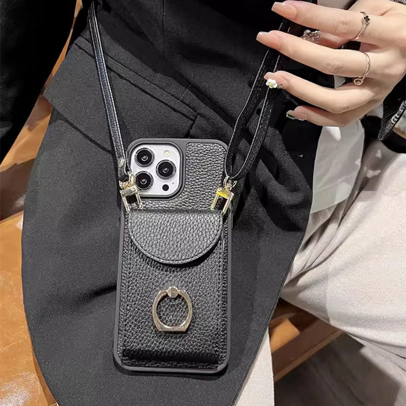 Multifunksjonell Skrårem Telefonveske med Lomme for iPhone-serien