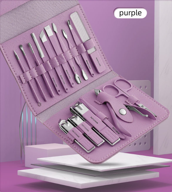 Pent sammenleggbart negleklippersett i rustfritt stål