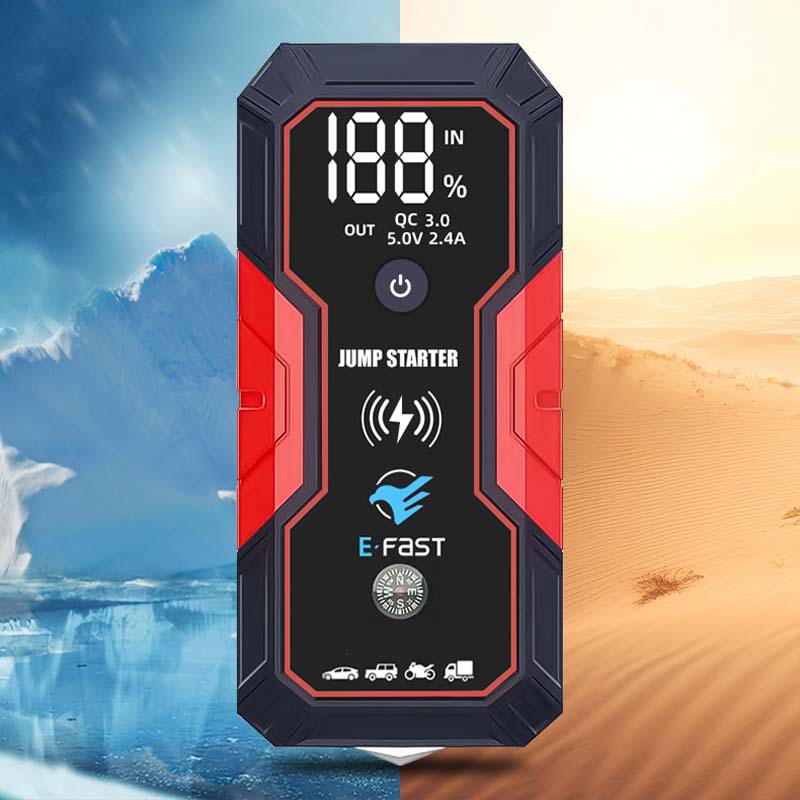 EKSTREME TEMPERATUR PRESTASJONER: Bygget med høytytende polymer-litiumbatterier, opererer denne nødstarteren for bilens batteri effektivt i ekstreme temperaturer fra -40°C til +80°C. Enten du er i en brennende sommer eller et ekstremt kaldt område.