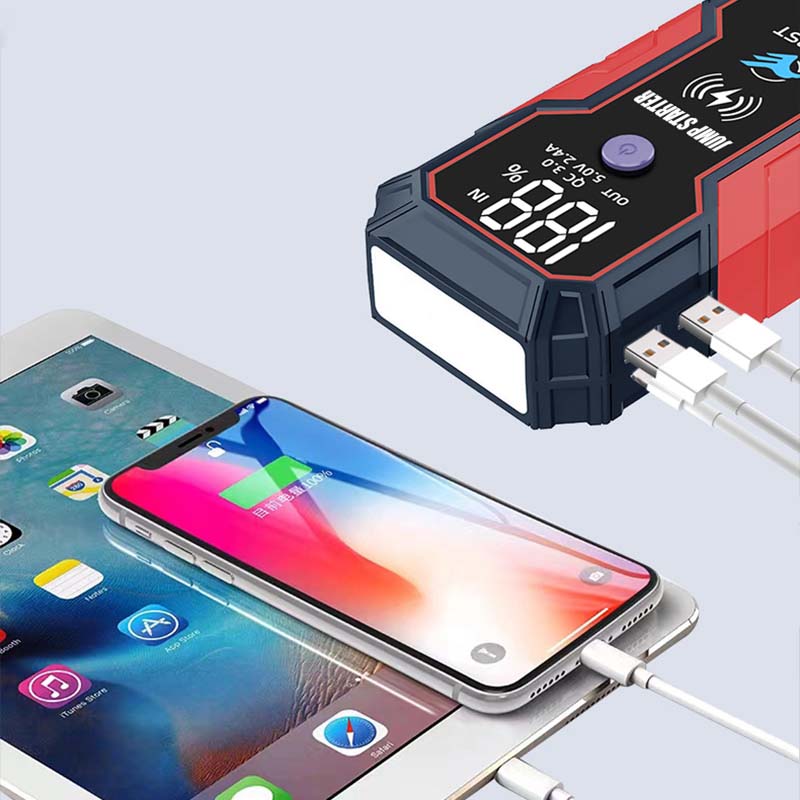 SEKS INTELLIGENTE BESKYTTELSE: Inkludert overladning, overlading, overstrøm, kortslutning, omvendt polaritet og temperatur beskyttelse, sikrer denne nødstarteren for bilens batteri trygg og pålitelig drift, og beskytter både kjøretøyet ditt og enheten selv.