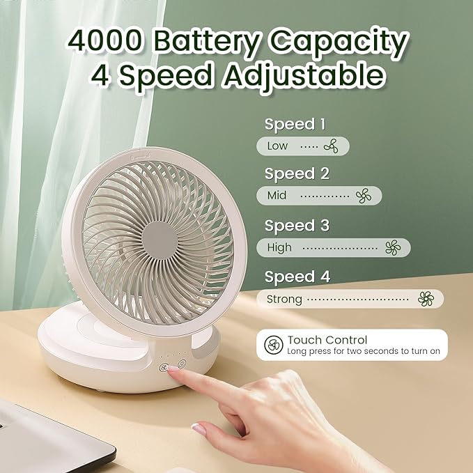 KRAFTIG BATTERIDREVET VIFTE: 4 hastigheter å velge mellom for å justere viftehastigheten etter dine behov.