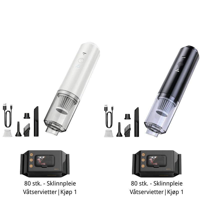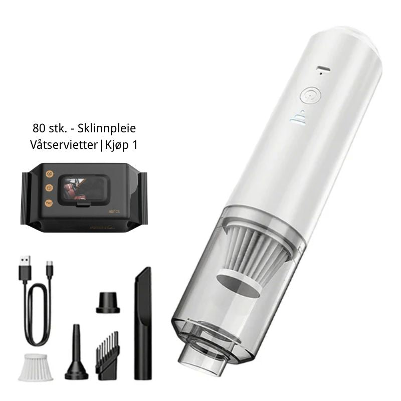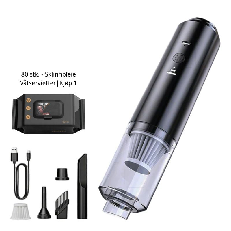 BÆRBAR & TRÅDLØS – Enkel å oppbevare og bruke. Denne støvsugeren er lett og kompakt, enkel å ta med, oppbevare i bilen og bruke uten irriterende ledninger. Den er ideell for raske rengjøringer på farten og kombinerer bekvemmelighet med effektivitet, slik at du kan holde bilen ren når som helst og hvor som helst.