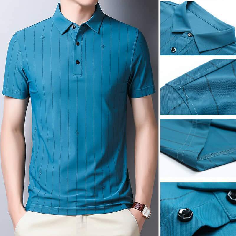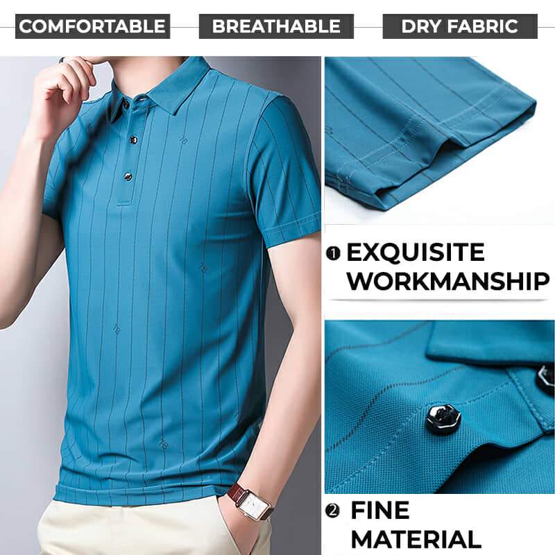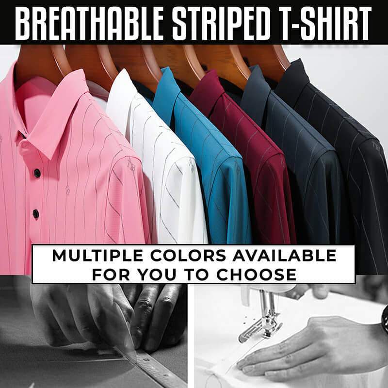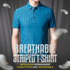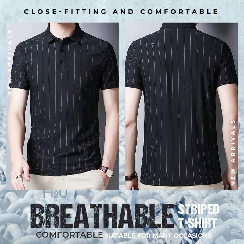 Synes du fortsatt at varmen er uutholdelig når du har på deg en bomulls-T-skjorte om sommeren? Denne pustende stripete T-skjorten for menn vil få deg til å føle deg kjøligere i sommervarmen!