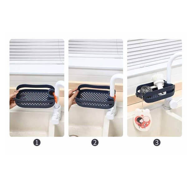 Design av oppbevaringskurv - Lett å plukke og plassere, rene redskaper er ryddige og ordnede, og pent plassert. Slitesterk svampholder for kjøkkenvask - ikke bare kranmatte, men også kjøkkenvaskorganisator, hjelper deg med å rydde svamp, såpe osv.