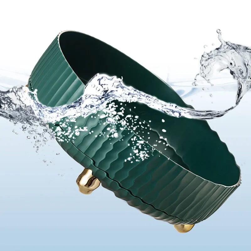 - 360° roterende og hevet kant: Skaporganisatoren har høykvalitets rustfrie stållagre i bunnen, som gjør at dette oppbevaringsbrettet roterer jevnt. Når du dreier den i en sirkel, forhindrer den hevede kanten at gjenstander faller ned. (MERK: Sett de fire små anti-skli-putene i bunnen før bruk).