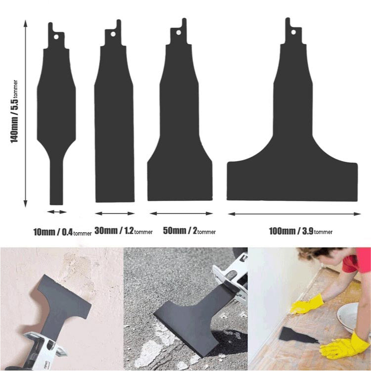 4 STK. I 1 SETT: Skrapeverktøyet inkluderer 4 Gjærende Sag Skrapeblad med forskjellige bladstørrelser for å dekke behovene ved ulike rengjøringsscenarier.
