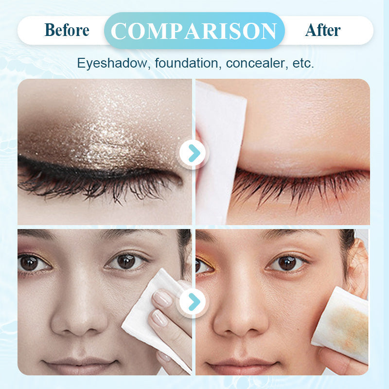 ØYEBLIKKELIG ANSIKTSRENGJØRING – Fjerner selv vanntett mascara og langvarig foundation med ett enkelt trykk. Ingen hard gniding nødvendig - bare dra den gjennomfuktede bomullen over huden for en restfri finish som lar porene puste.