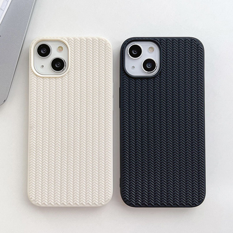 SJOKKSIKKER DESIGN - Flettet stripet enkel telefonveske for iPhone kombinerer myk TPU-ramme og innebygde fallsikre hjørner, og beskytter telefonen mot riper, smuss og støt, og gir omfattende beskyttelse mot utilsiktede fall.