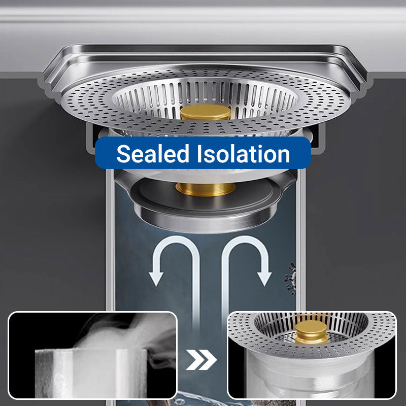 TRYKK-FOR-TETNING - LUKTMOTSTANDE & INSEKTSIKRING: Med sin trykk-for-tetning-funksjonalitet blokkerer denne avløpsproppen ikke bare partikler, men hjelper også til med å eliminere ubehagelige lukter og forhindrer insekter i å komme inn i avløpet. Ideell for å holde vaskområdet ditt hygienisk og friskt.