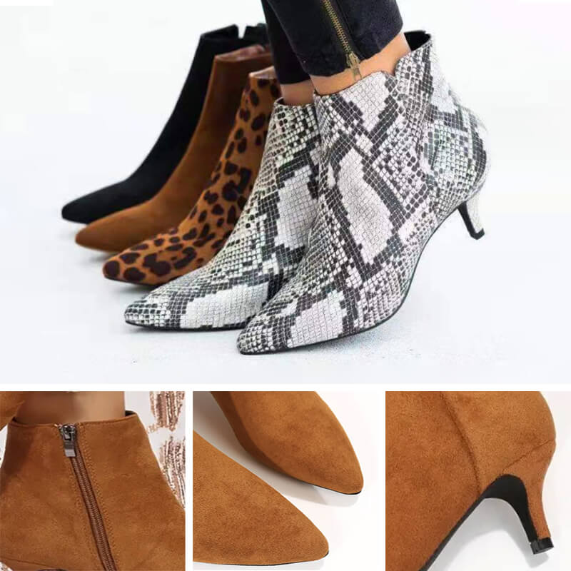 MODERNE DESIGN - Stilige ankelstøvler i slengstil med glidelås og stilethæl vil enkelt matche ethvert antrekk om våren og høsten, som midi-kjole, leggings, jeans, shorts, smale bukser, gensere, osv.
