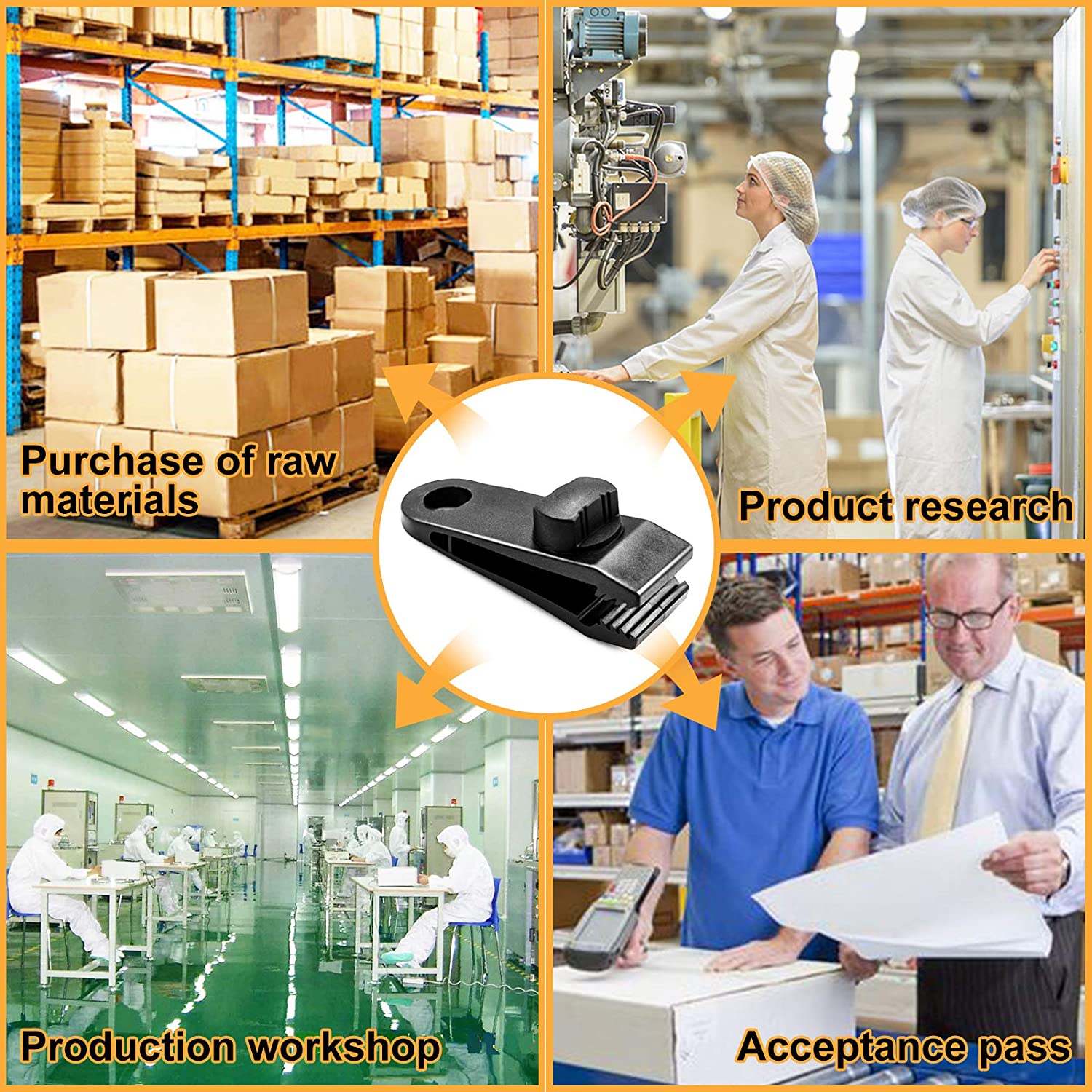 - Unik låseklemme - Grensesnittet mellom klemmene er tannformet, og spiralbøyledesignet kan klemme presenningen maksimalt, uten at du trenger å bekymre deg for å falle av problemet.