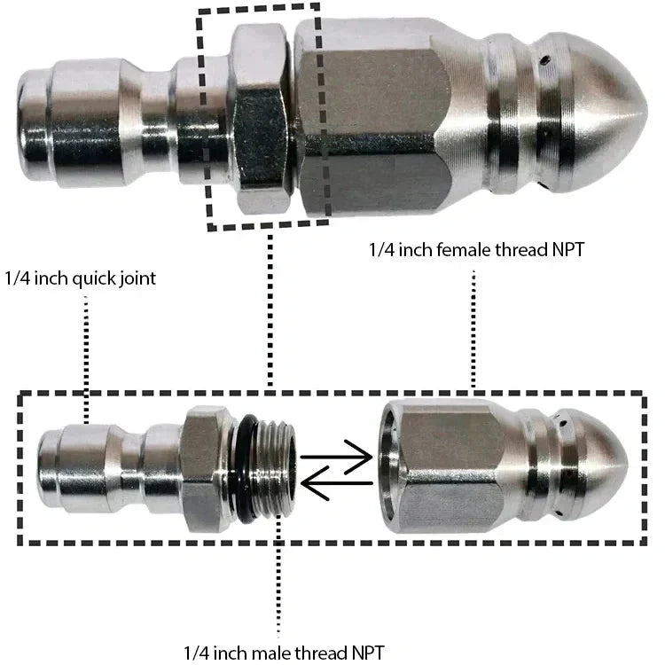 Gi nytt liv til rørsystemet ditt med vårt kraftige munnstykke for rensing og fjerning av tilstoppinger. Dette munnstykket forandrer alt når det gjelder å fjerne gjenstridige tilstoppinger og holde rørene rene og effektive.