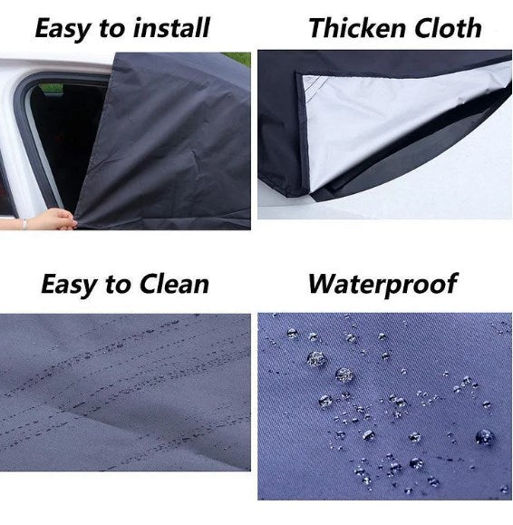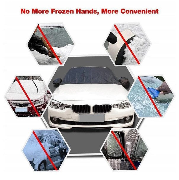 - ⛄Frostbeskyttelse og allsidig bruk om vinteren: Dette frontrutedekselet er laget av slitesterkt stoff som beskytter mot snø, frost, is, sludd, slaps, hagl, snøstorm og annet dårlig vintervær. Det er motstandsdyktig mot UV-stråler og støv, og kan også brukes som solbeskyttelse og holde løv på dekselet.