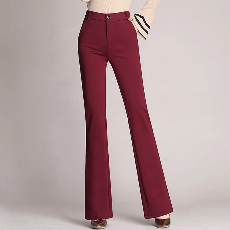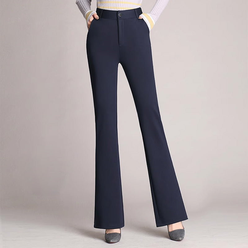 Oppdag uovertruffen komfort og stil med våre kvinners ultra-elastiske myke dressbukser. Laget av super elastisk stoff, tilbyr disse buksene et tilpasset passform som ikke bare gjør deg slank og høy, men gir også utmerket bevegelsesfrihet. Mykheten i stoffet gjør dem allsidige nok til å brukes selv under yogatimer, slik at du er både chic og komfortabel uansett hvor du går.